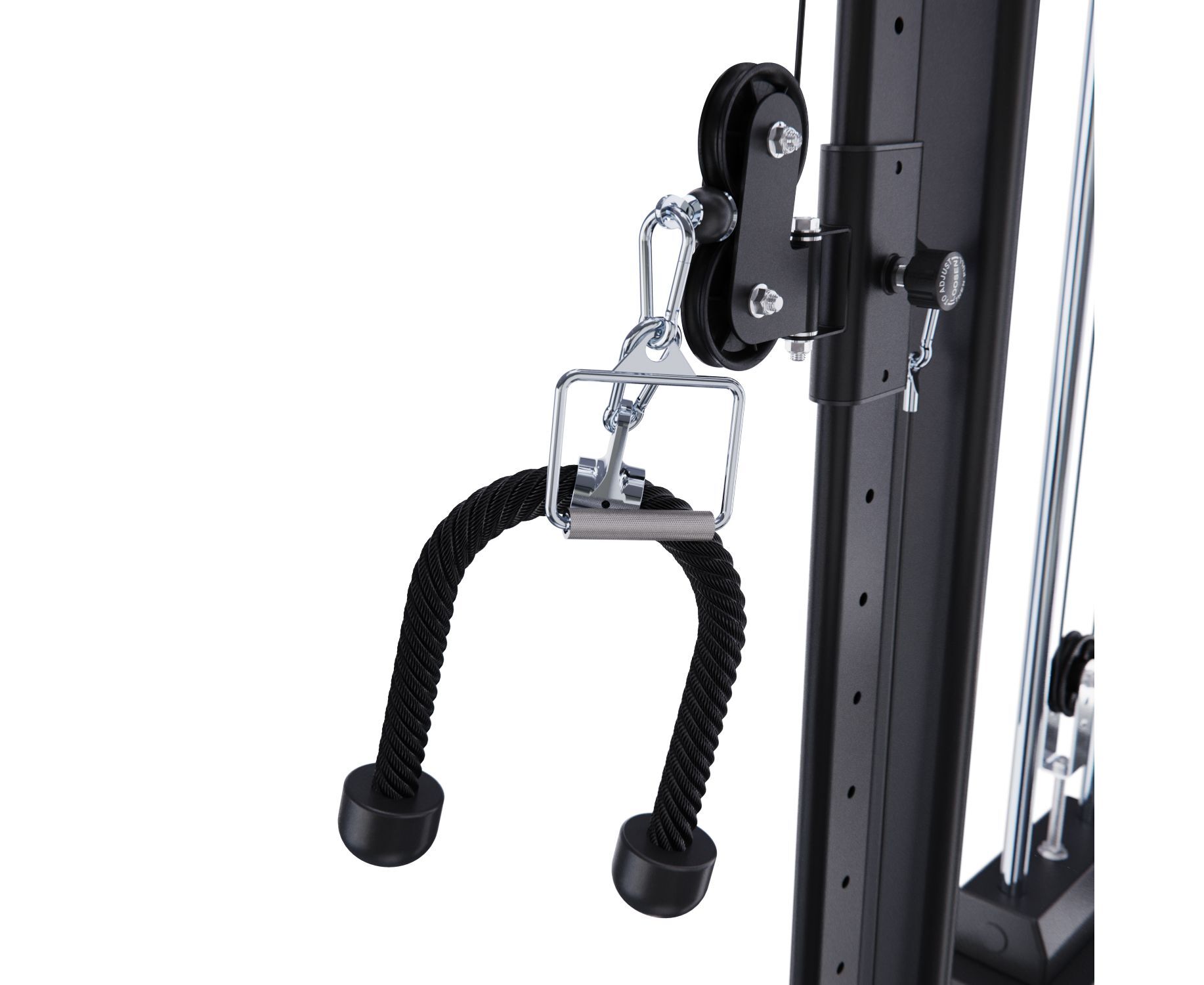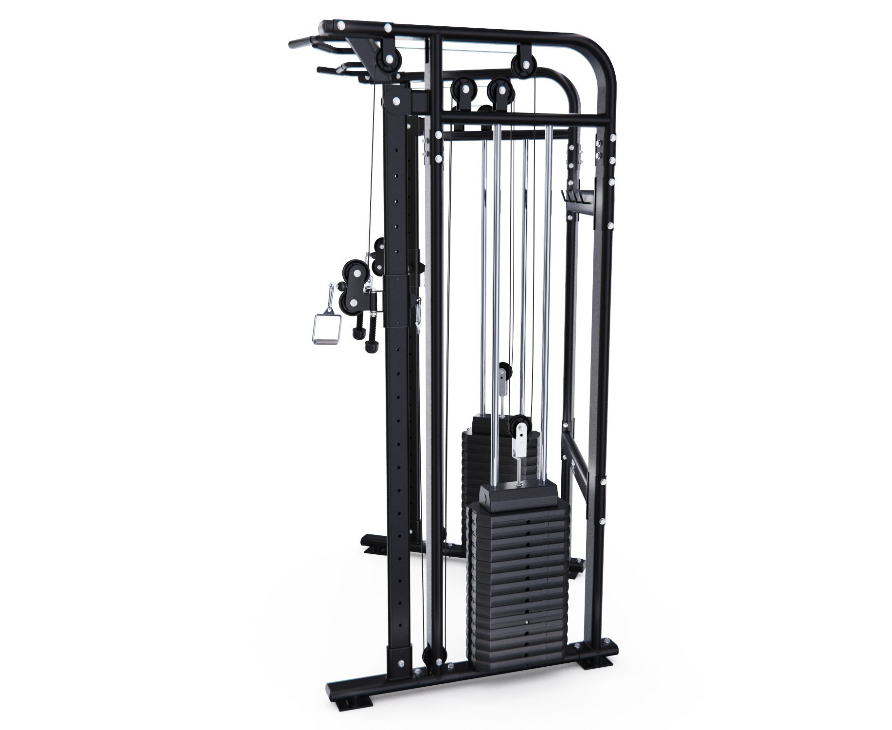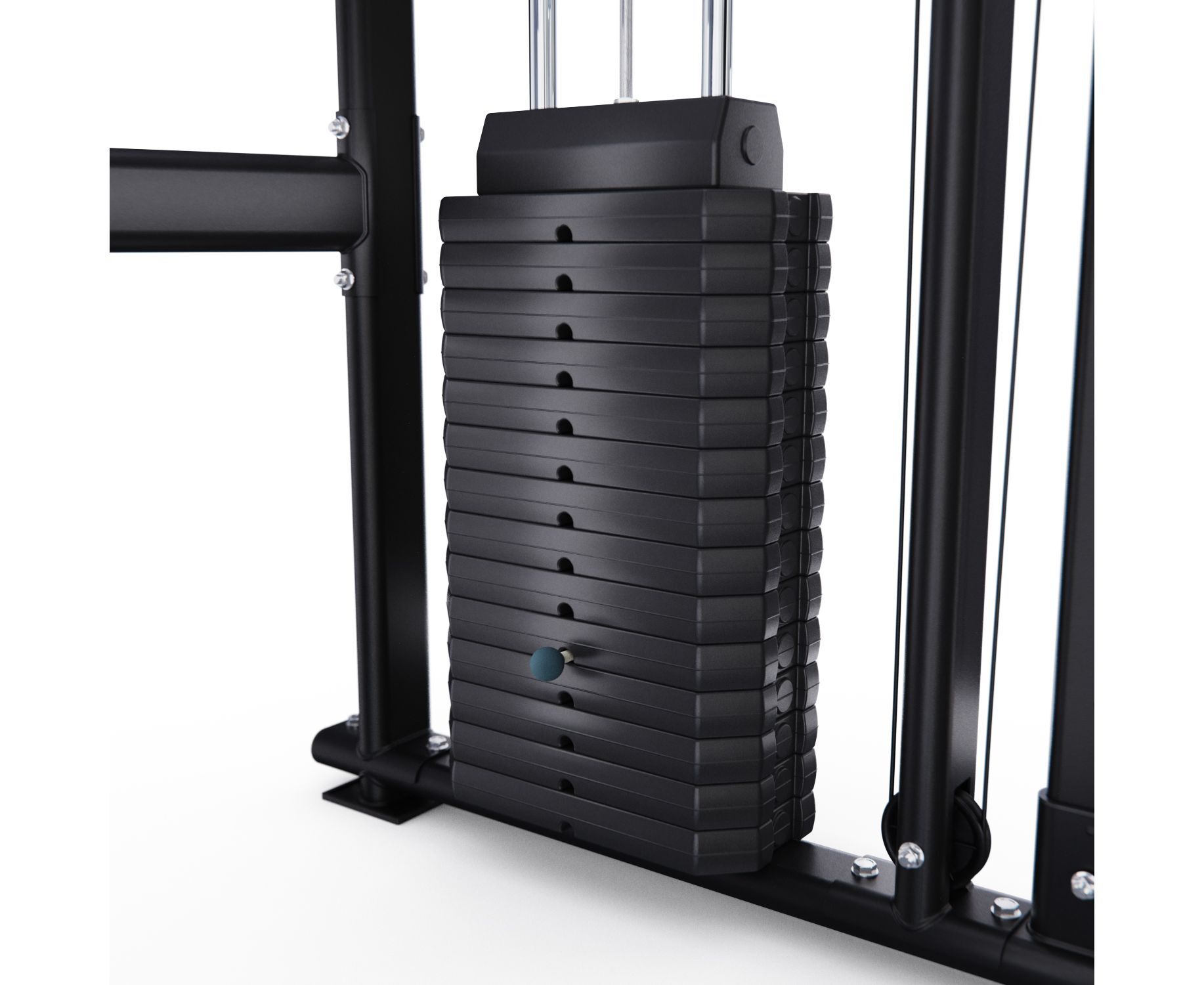 Силовые стеки весом по 90 кг входят в комплектацию, а вес каждой пластины равен 6 кг. Плавность хода стеков обеспечивают ролики на подшипниках. Конструкция тренажёра выполнена из высококачественной стали и обеспечивает его устойчивость и надёжность.