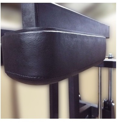 - Обивка плечевых упоров тренажера выполнена из искусственной кожи плотностью 650 г/м2 и устойчивостью к истиранию более 100 000 циклов.