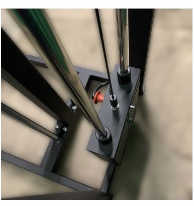 - Основание тренажёра имеет стальные 10 мм подпятники с отверстиями для крепления к полу.