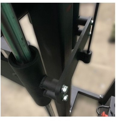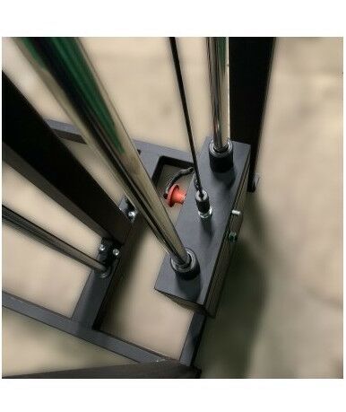 - Компенсационная нагрузка с грузоблока на металлическую обрезиненную поддерживающую спортсмена площадку передается через роликовый блок посредством стального троса толщиной 5 мм в чёрной ПВХ-оболочке (максимальная нагрузка 800 кг).