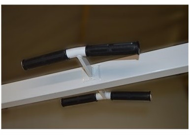 - На раме для облегчения выполнения различных упражнений имеются два вертикальных, покрытых ПВХ, поручня.