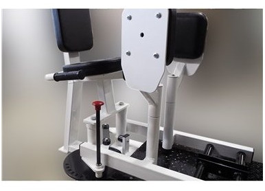 - Блок весовой на грузки представляет собой две вертикальные зеркально отполированные направляющие из нержавеющей стали диаметром 25 мм, по которым бесшумно, благодаря поливинилхлоридным втулкам, перемещаются пятнадцать металлических пластин по 5 килограмм каждая. Сквозь все пластины проходит вертикальный металлический шток с отверстиями и при помощи штыревого фиксатора позволяет настраивать вес поднимаемого во время упражнения груза.