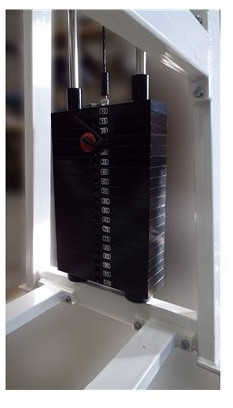 - Передача усилия от жимовой рамы на стек осуществляется через систему шкивовых роликовых блоков со скрытыми подшипниками качения посредством стального троса с полиуретановым покрытием.