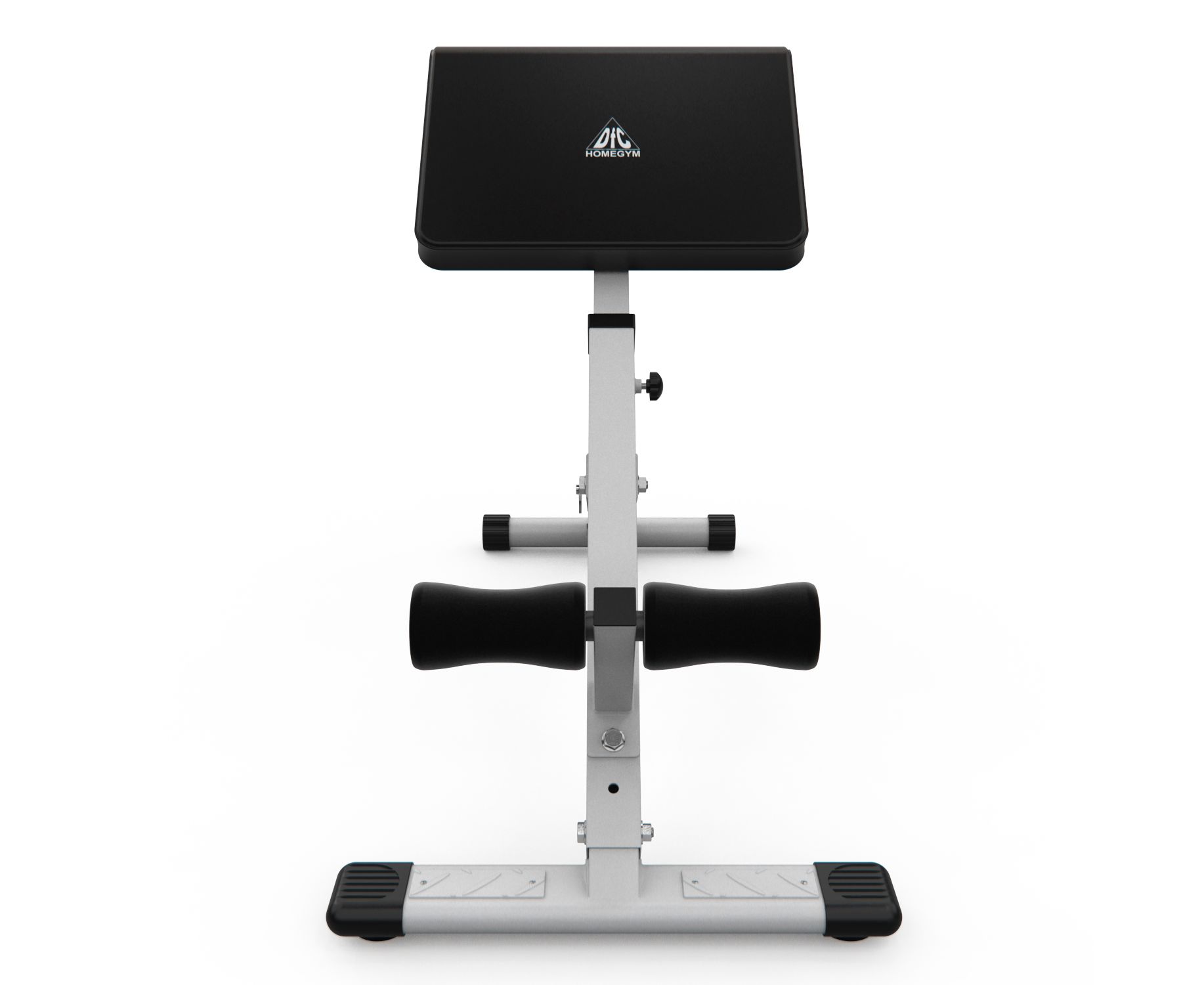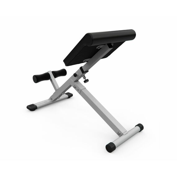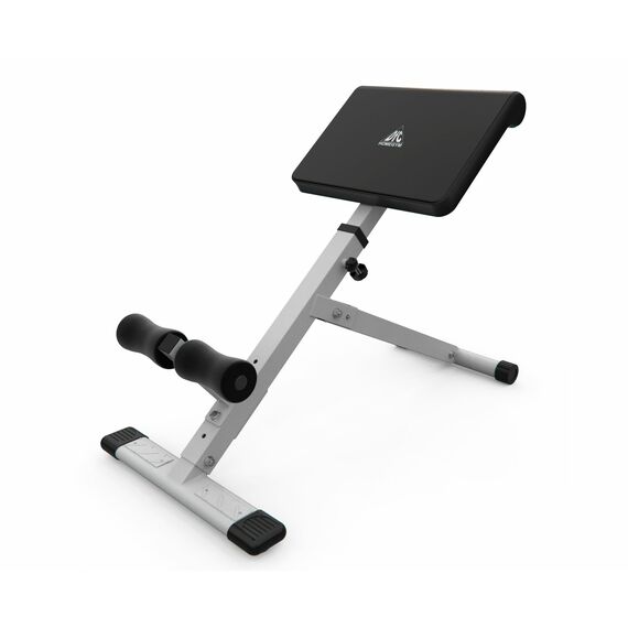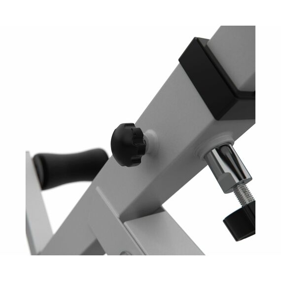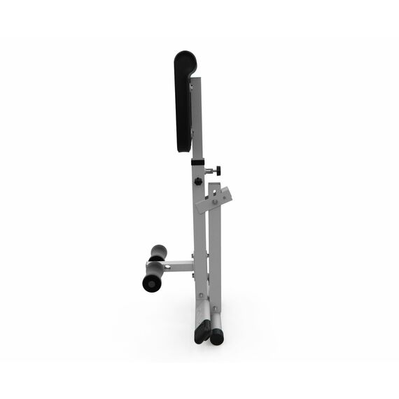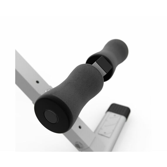 Высота тренажера регулируется, что позволяет настроить его под разный рост пользователей. Подушка имеет четыре положения регулировки в диапазоне 16 см, а размер подушки составляет 44 х 30 х 4,5 - 7 см. Валики для ног можно регулировать в трех положениях. Рама тренажера изготовлена из стального профиля размером 50х50х1,5 мм и 45х45х1,5 мм, и выдерживает нагрузку до 120 кг.