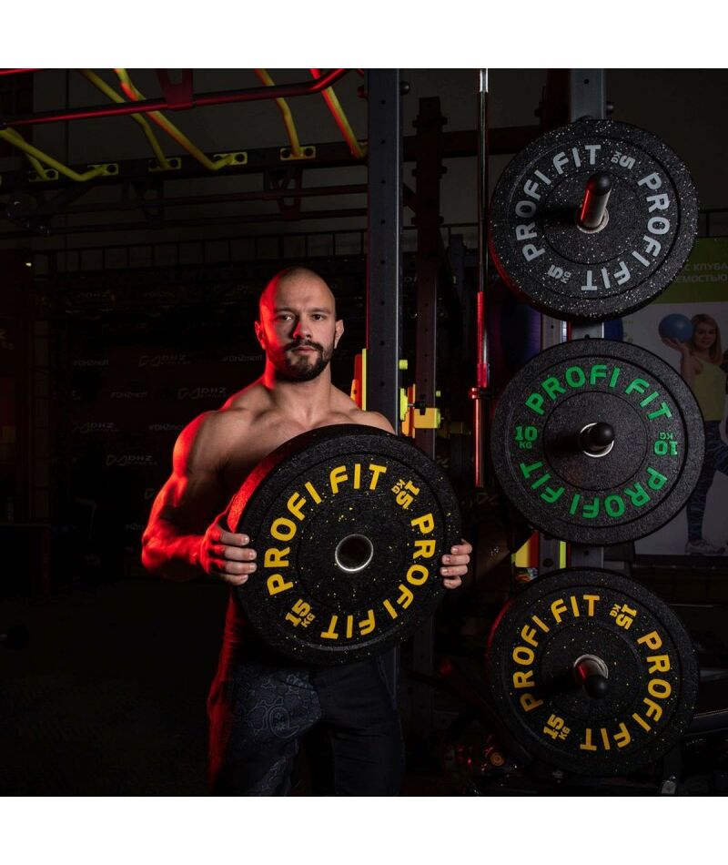 Диск для штанги PROFI-FIT HI-TEMP D-51, 20 кг с цветными вкраплениями