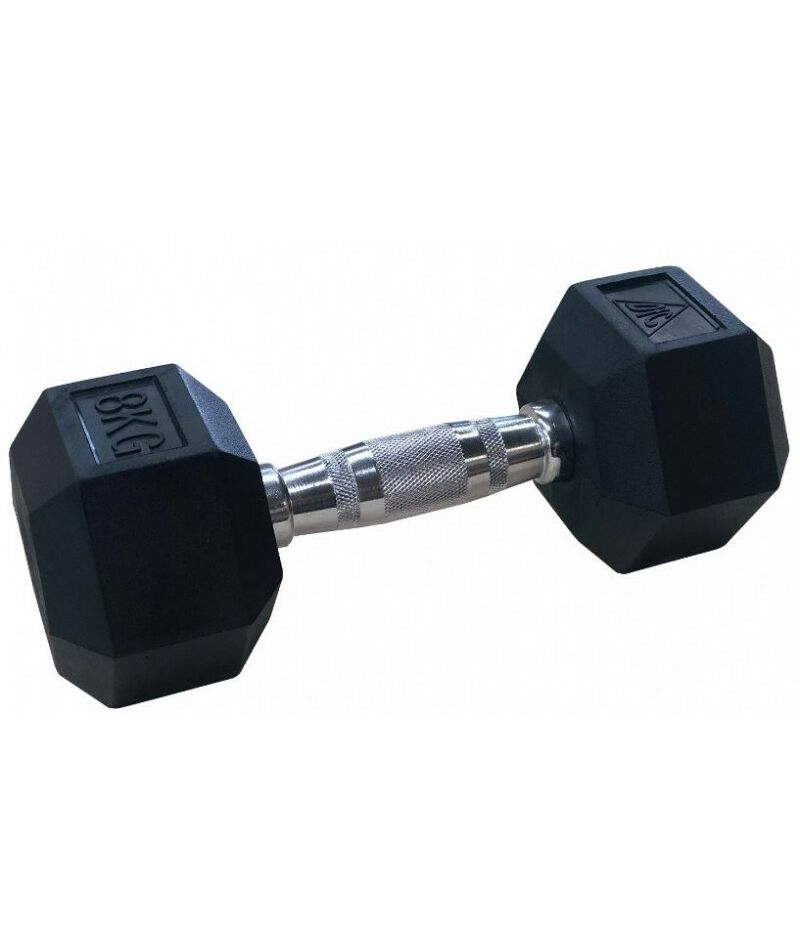 - Гантель обрезиненная с хромированной ручкой. Вес гантели 8 кг, в комплекте 2 штуки (пара)