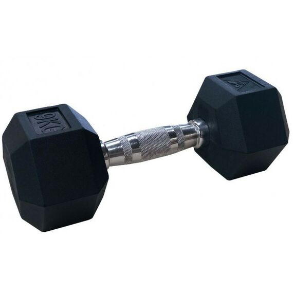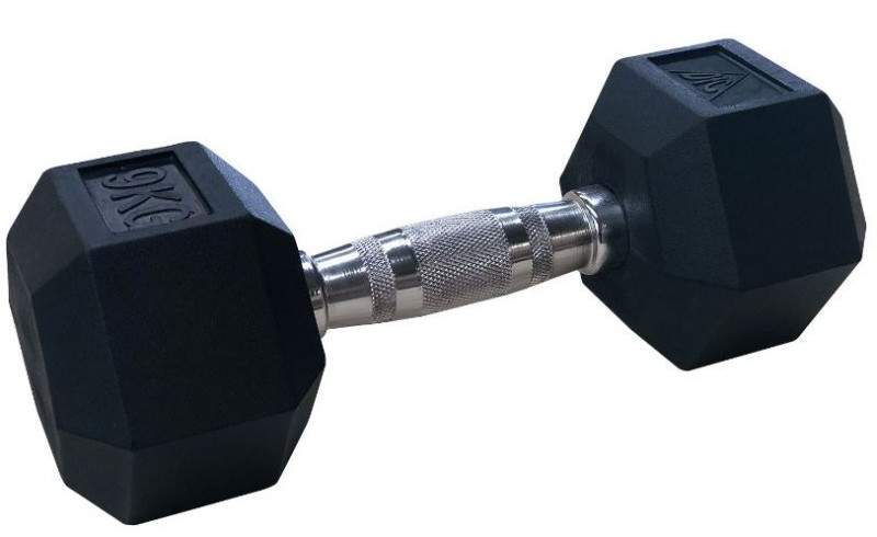 - Гантель обрезиненная с хромированной ручкой. Вес гантели 9 кг, в комплекте 2 штуки (пара)