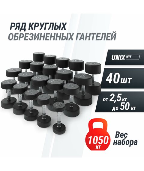 Ряд гантелей круглых обрезиненные UNIX Fit от 2.5 до 50 кг