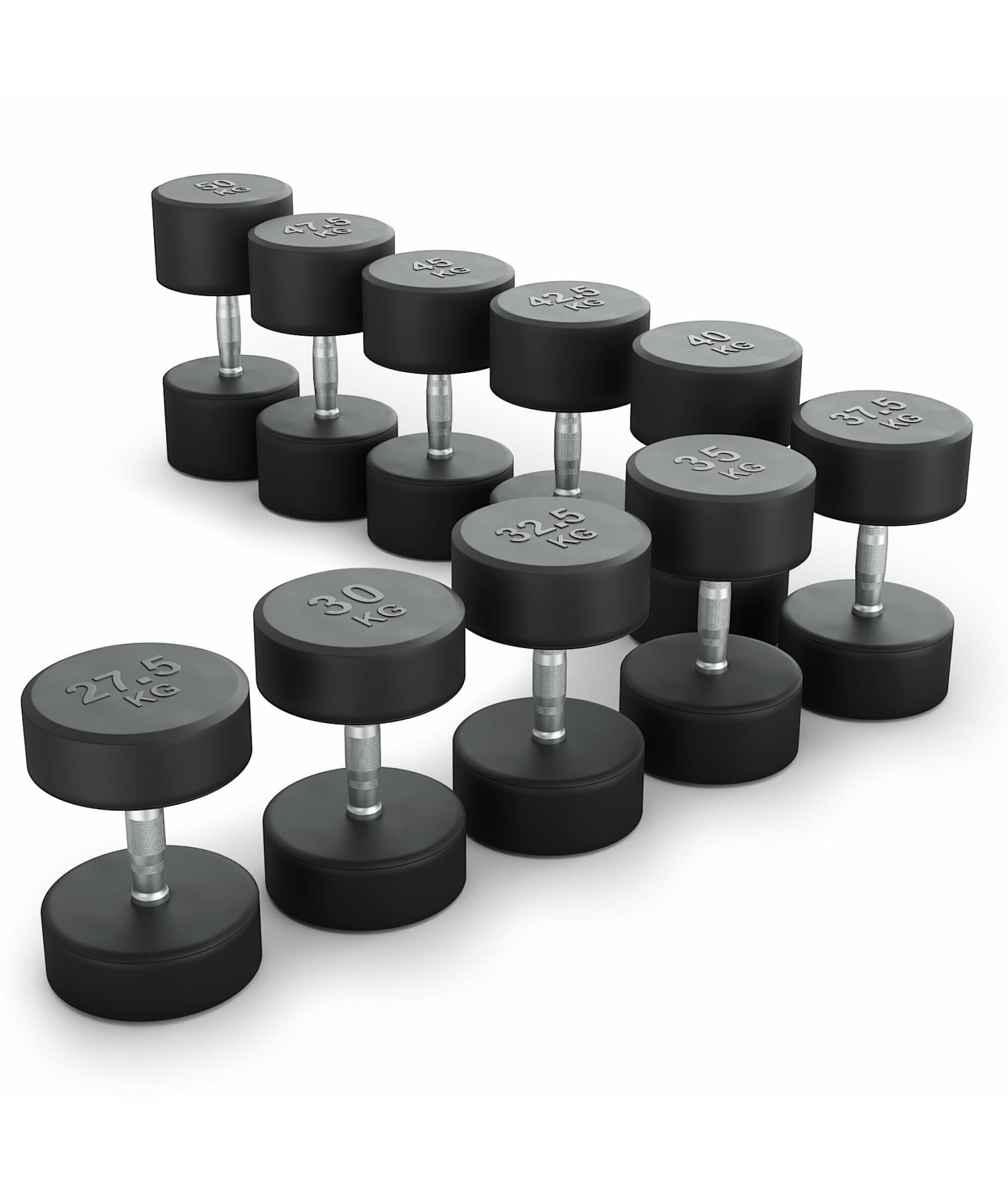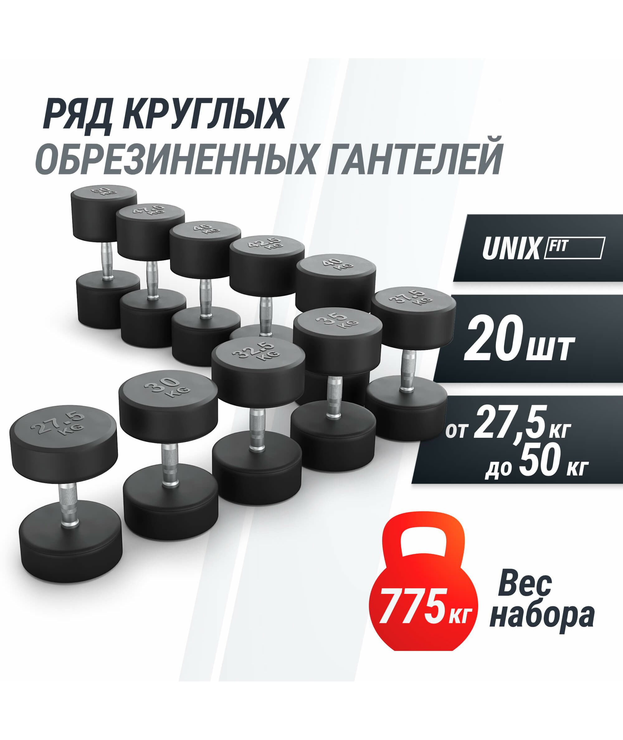 Ряд гантелей круглых обрезиненных UNIX Fit от 27.5 до 50 кг