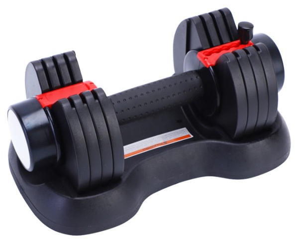 - Гантель имеет эргономичную рукоятку и удобные замки-переключатели с обозначением веса нагрузки, расположенные по обоим концам гантели. Благодаря переключателям, можно за несколько секунд изменить и выбрать нужный вам вес.