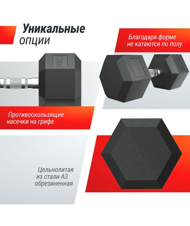 Гантель гексагональная UNIXFIT 20 кг обрезиненная, пара