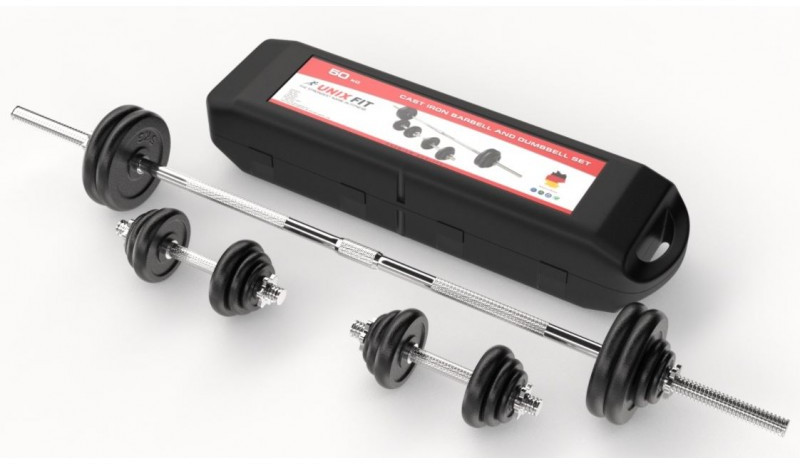 Набор гантелей и штанга UNIXFIT В кейсе 50 kg