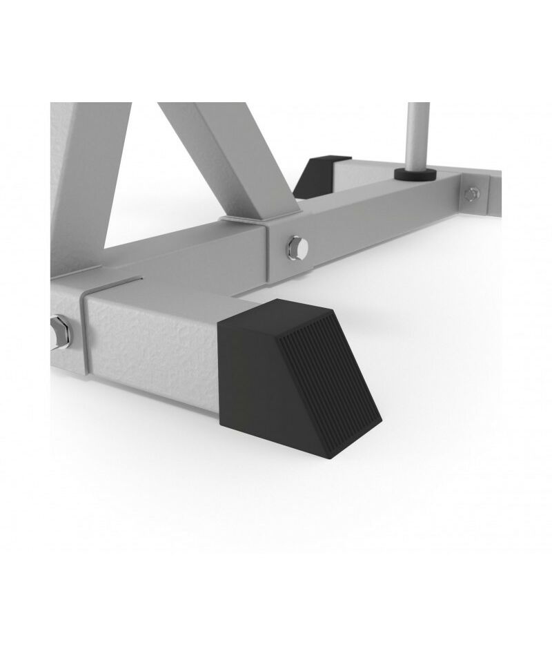 - Стойка выдерживает нагрузку до 200 кг, на ней можно хранить диски с посадочным отверстием 26 мм. Надежность стойки обеспечивает профиль рамы, выполненный из высокопрочной стали.