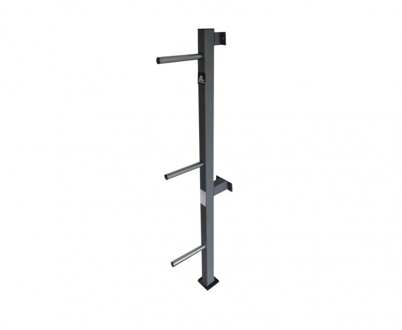 - Стойка располагается на полу, с упором на стену. Для дополнительной устойчивости прикручивается болтами. Компактно размещается в углу комнаты. Рекомендуем размещать снаряды сверху вниз, в порядке увеличения массы.