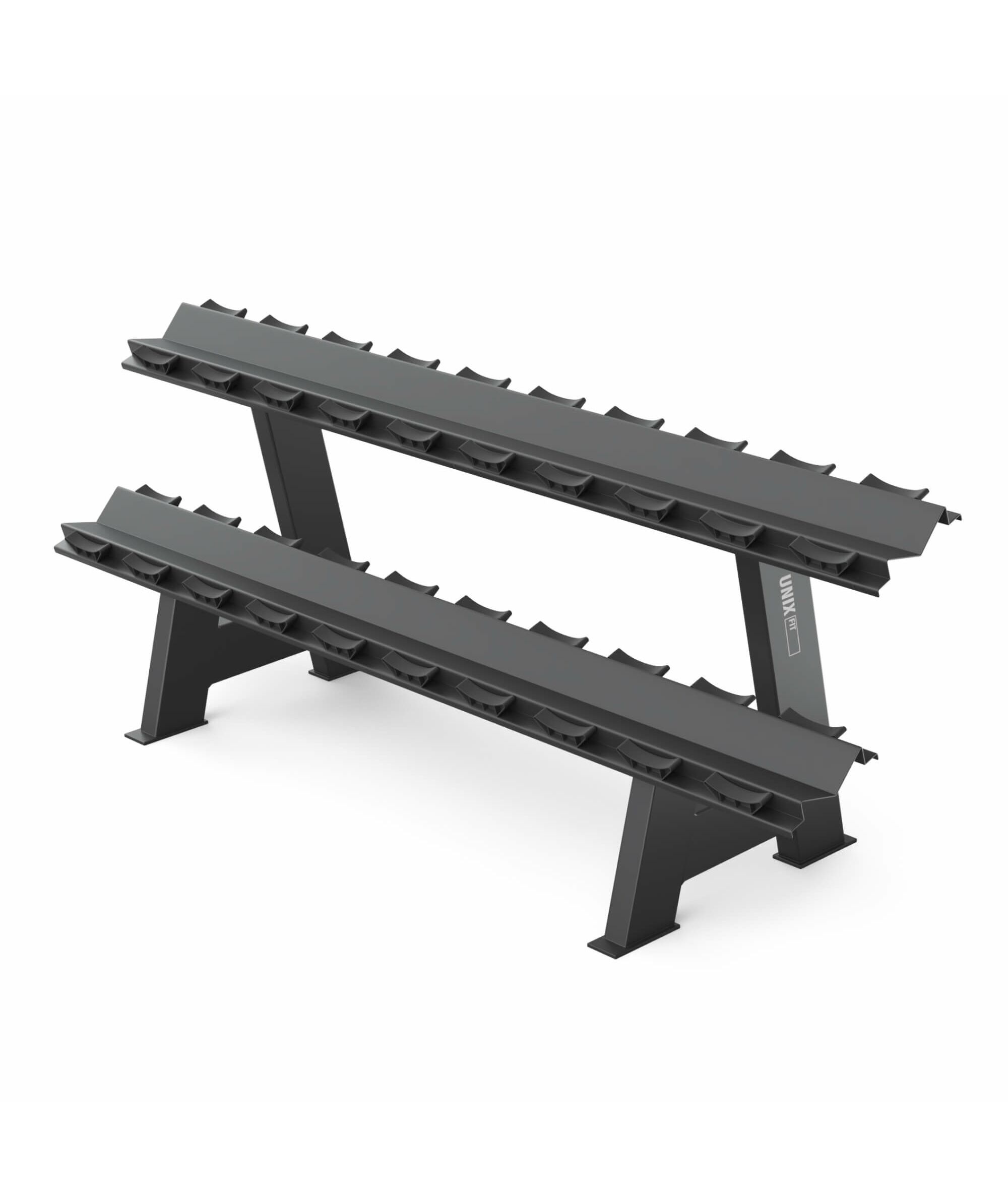 Стойка для гантелей UNIX Fit DumRack 10 PRO станет незаменимым аксессуаром для тренажерного зала или домашнего спортивного уголка. Стойка под гантели сочетает в себе прочность, функциональность и стильный дизайн. Максимальная нагрузка гантельной стойки 500 кг, возможность одновременного хранения до 20 позиций.
