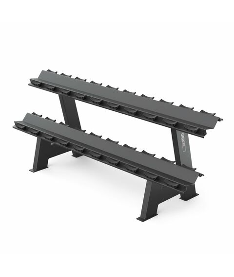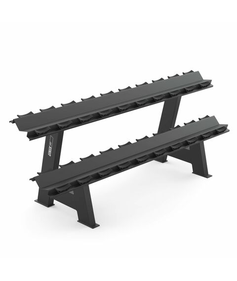Подставка для гантелей изготовлена из особопрочной стали Q235, которая используется для производства деталей с большим уровнем нагрузки, например для строительства мостов и зданий. Такая конструкция с толщиной стали 1,8 мм обеспечивает надежное и безопасное хранение гантелей различного веса, защищая их от повреждений, сохраняя порядок в тренировочном пространстве. Двухрядная конструкция с противоскользящими ножками обеспечивает удобный доступ к гантелям во время тренировок.