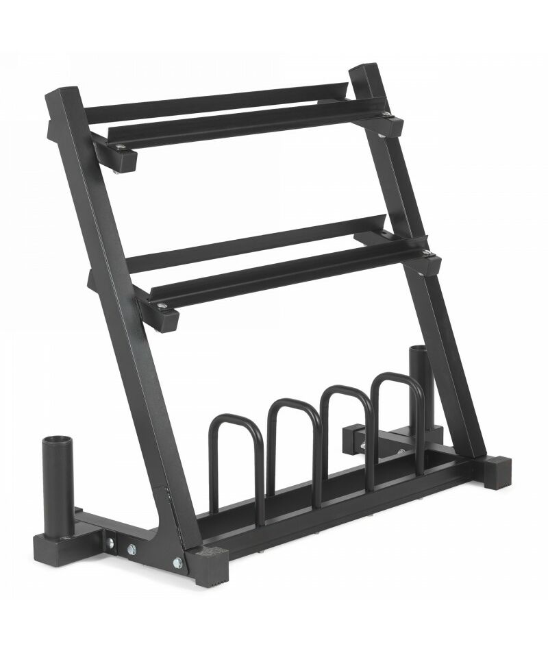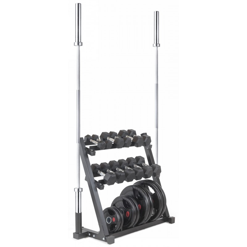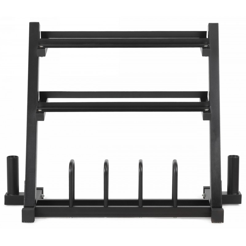 3 удобные полки(2 верхние для гантелей + 1 нижняя для дисков)