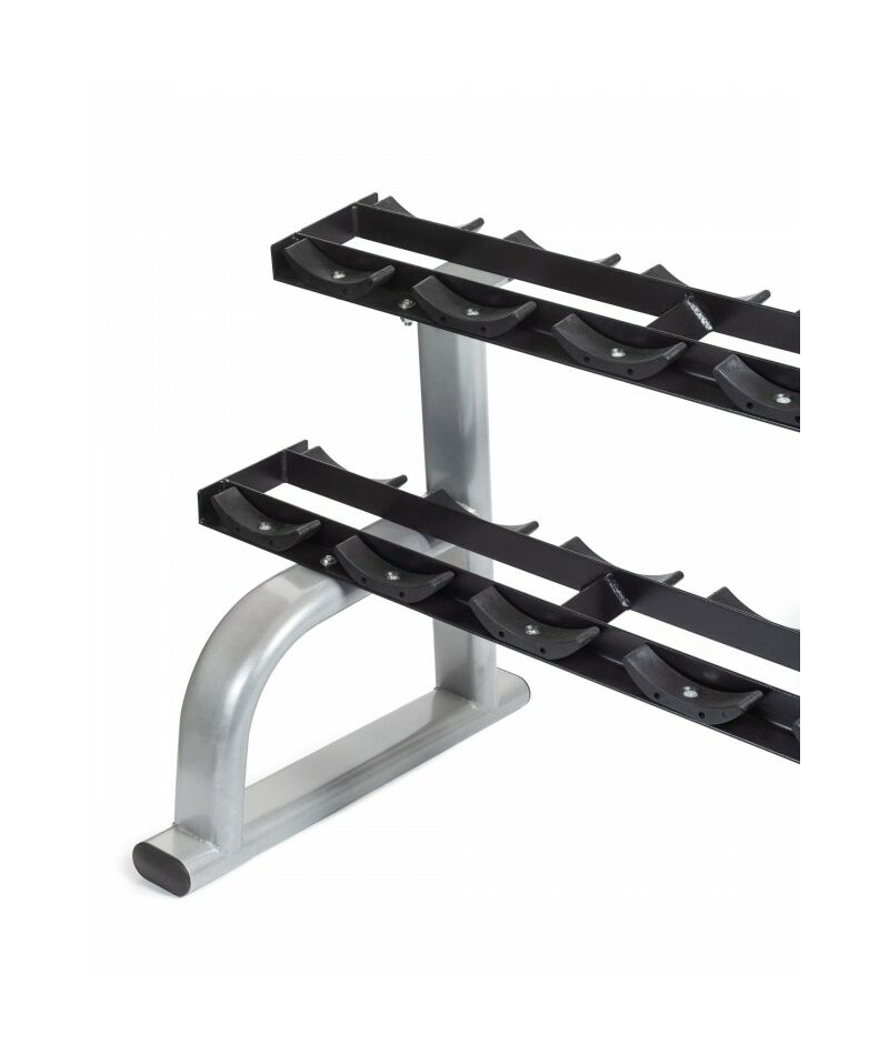 - Вместительность – удобное размещение 10 пар гантелей (20 снарядов) с раздельными ячейками для защиты от повреждений и удобного доступа.