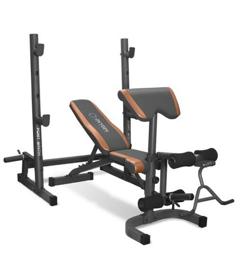 - Скамья для жима хотя и не является полностью профессиональной, тем не менее вплотную приближается к этому уровню. По этой причине она не складывается - ей требуется дополнительная устойчивость и надежность для тяжелых весов. Скамью можно использовать в нескольких положениях - с высоко поднятой спинкой для выполнения упражнений на бицепс (совместно с партой на бицепс), как скамью с положительным наклоном (2 уровня), как горизонтальную скамью и как скамью с отрицательным наклоном. Парта на бицепс регулируется а 3-ех положениях и при необходимости выполнения упражнений на сгибание либо разгибание ног ее можно снять.