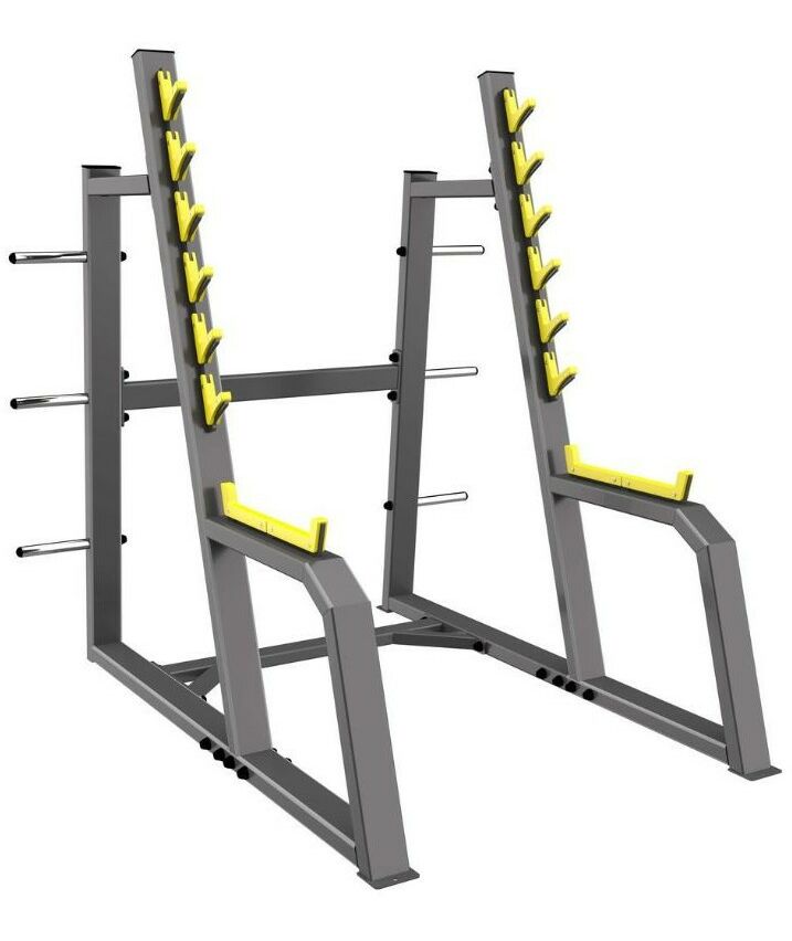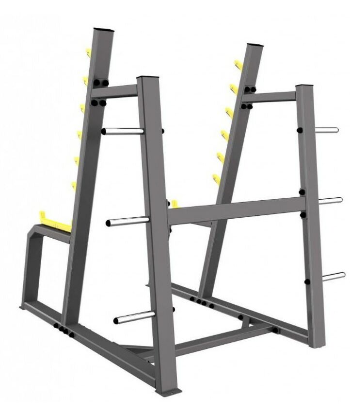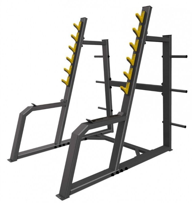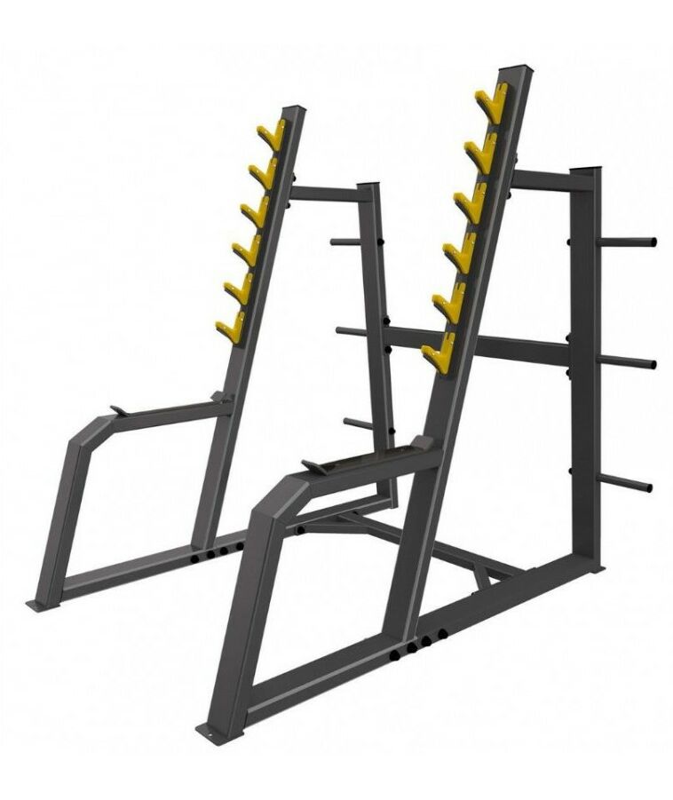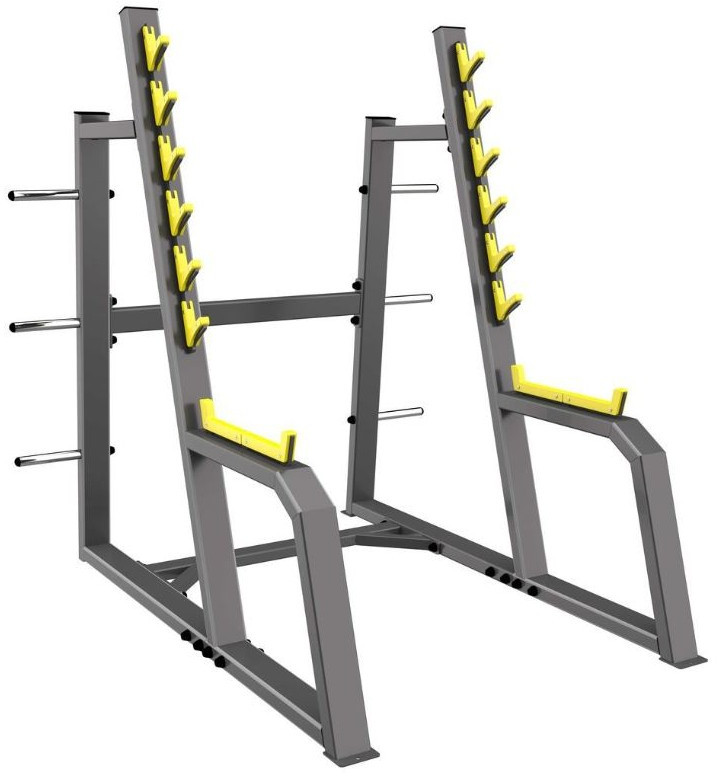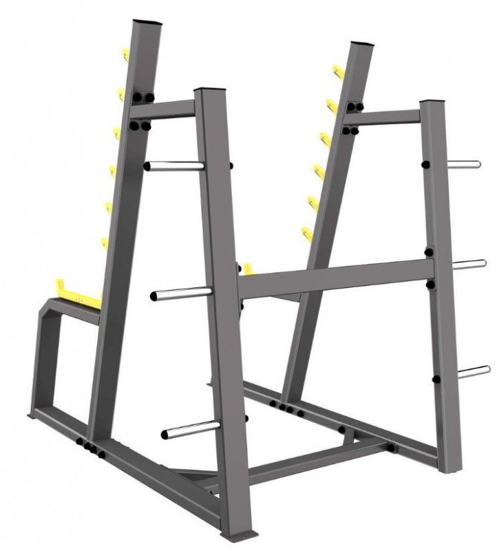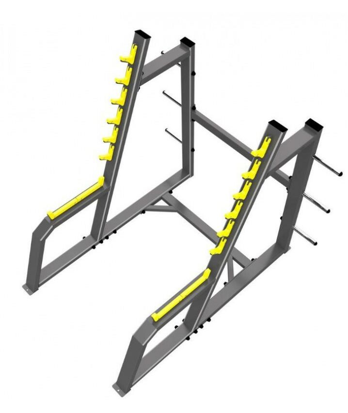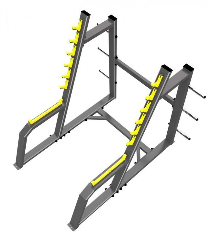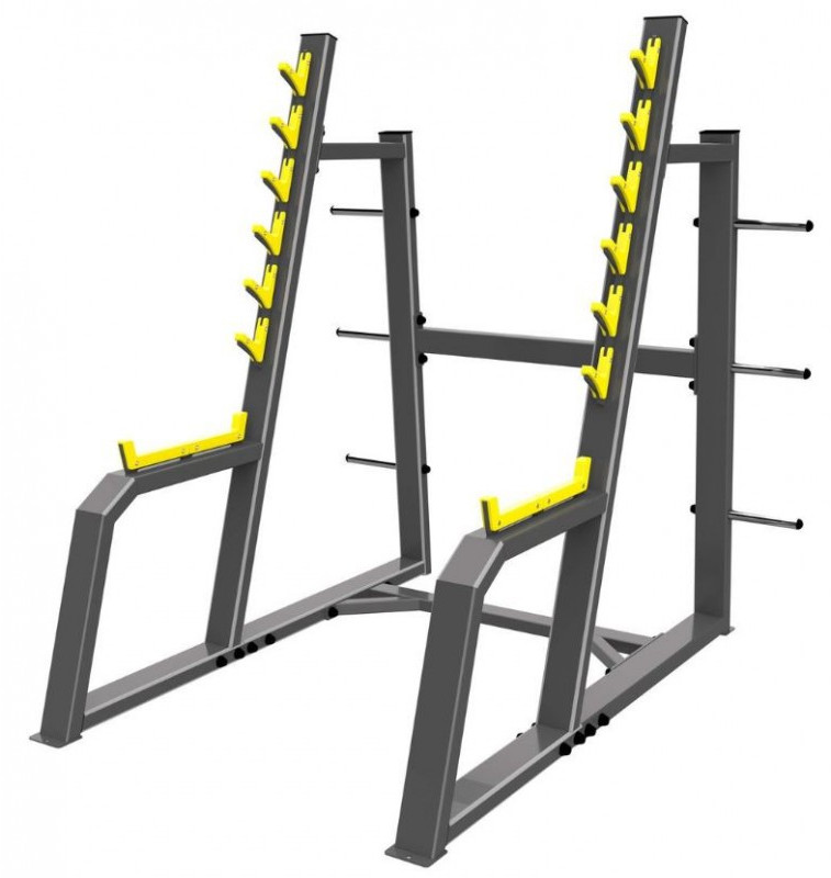 - Стойка с шестью ограничителями предназначена для безопасного выполнения упражнения «приседание со штангой».