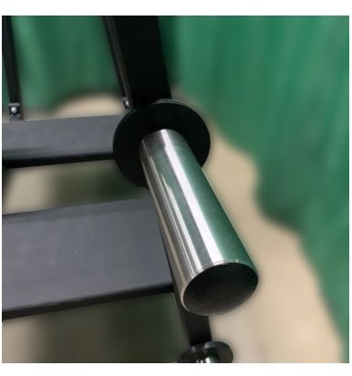 - Все части тренажёра покрыты полимерным покрытием за исключением контактных (трущихся) частей, покрытых хромом, накопителей и страховочной площадки покрытой резиной.