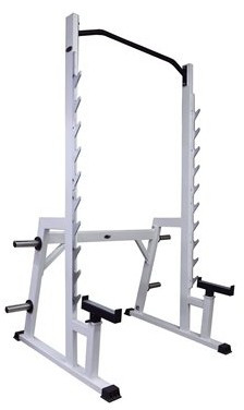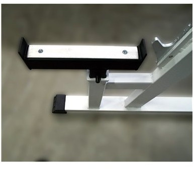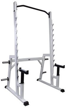 - Стойка оснащена двумя регулируемыми по высоте страховочными консолями–площадки, защищающими спортсмена во время занятий.