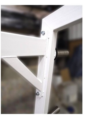 - Стойки-рамки и соединительные перекладины тренажёра изготовлены из стальной прямоугольной трубы 80х40х3 мм.