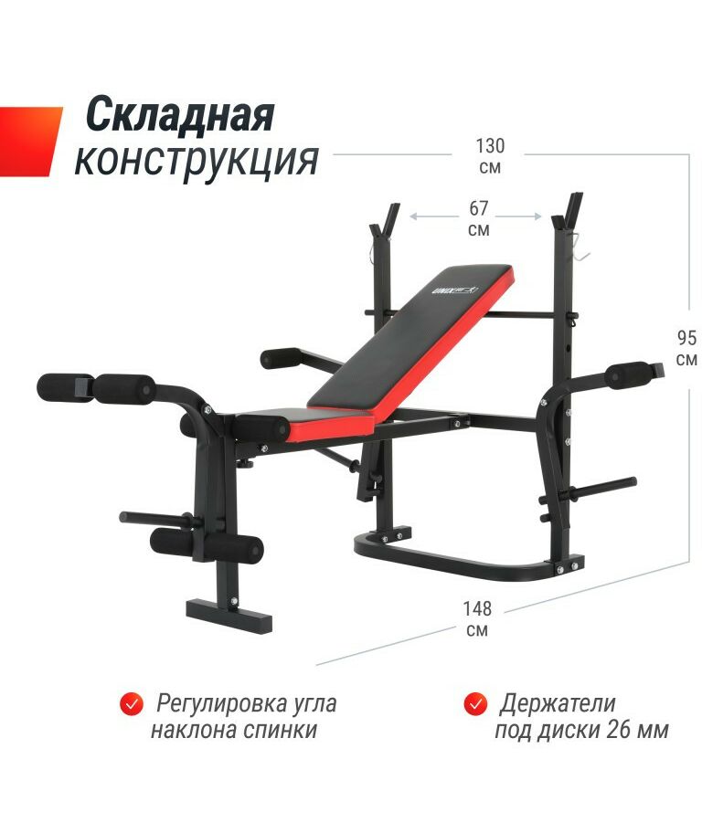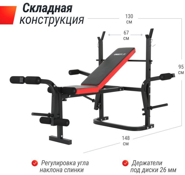- Складная конструкция скамьи с опциями для хранения после тренировки.