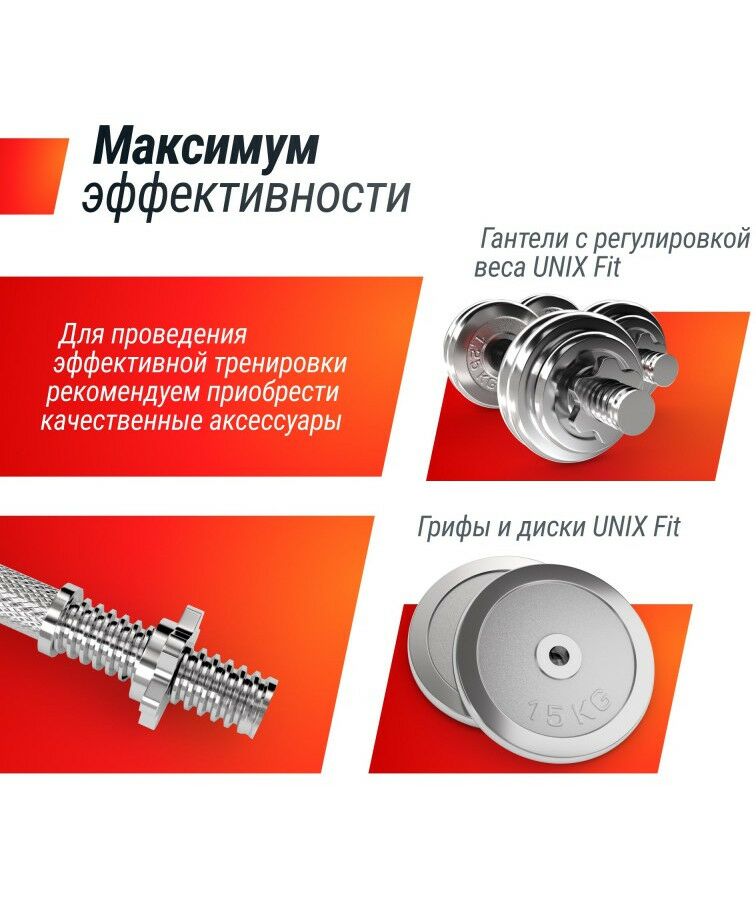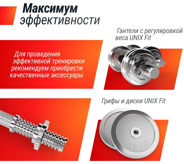 - В качестве нагрузки для баттерфляй и жим ногами подходят диски UNIX Fit Ø26мм.