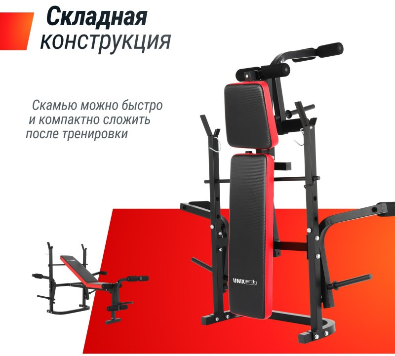Плюсы универсальной силовой скамьи со стойками UNIX Fit BENCH 120M: