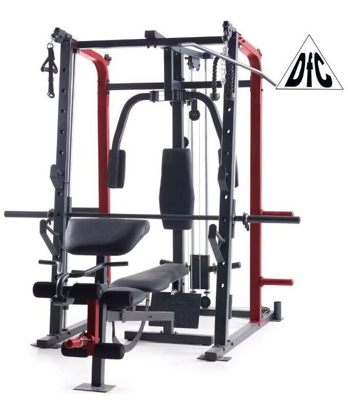 - Тренажер предназначен для выполнения различных силовых упражнений: Машина Смита, тяга сверху/снизу, баттерфляй, парта для бицепса, сгибание/разгибание, жим лежа на скамье дополнительной штанги (штанга и диски опция)