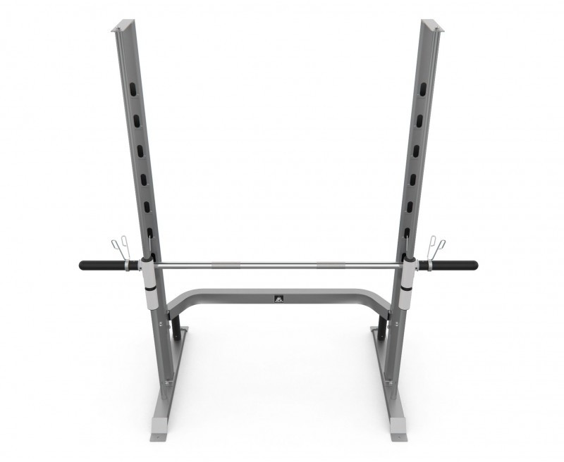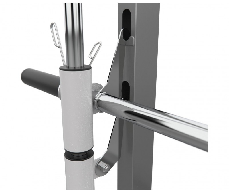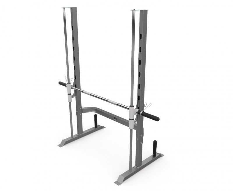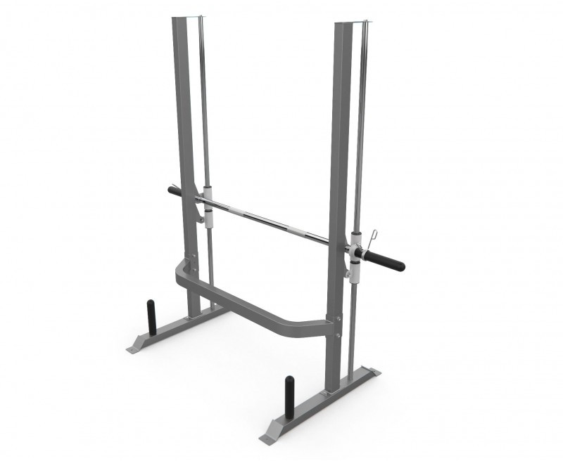 - Рама выдерживает нагрузку до 300 кг. Гриф шириной 203 см с замком lock-jaw с рифлёным покрытием регулируется в 7-ми положениях по высоте. Гриф двигается по чёткой траектории, благодаря чему вместо контроля над положением тела, вы сможете сосредоточиться на технике выполнения.