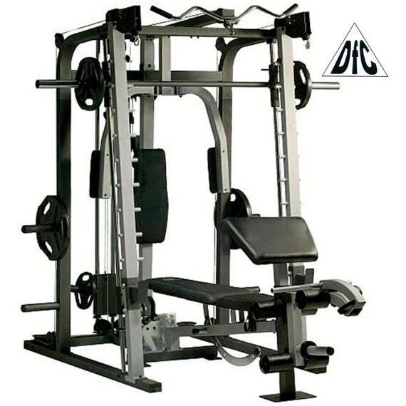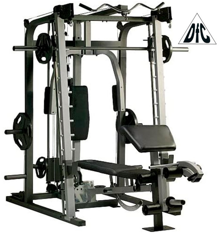 - Тренажер предназначен для выполнения различных силовых упражнений: Машина Смита, тяга сверху / снизу, баттерфляй, парта для бицепса, сгибание / разгибание, жим лежа на скамье дополнительной штанги (опция)