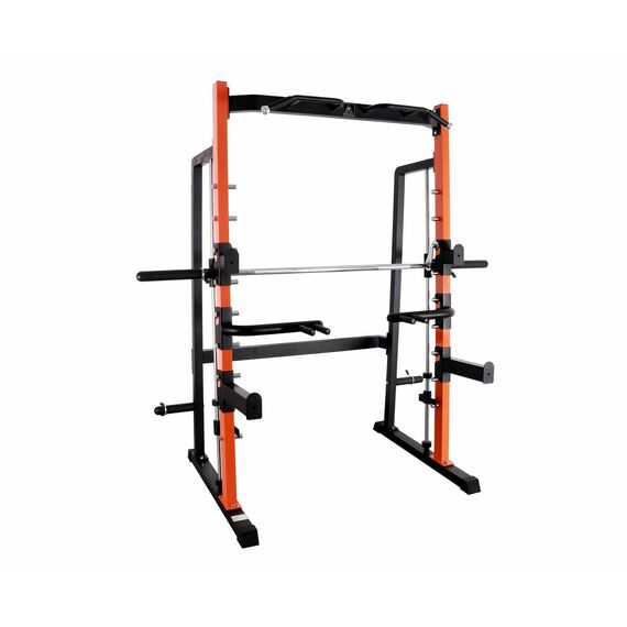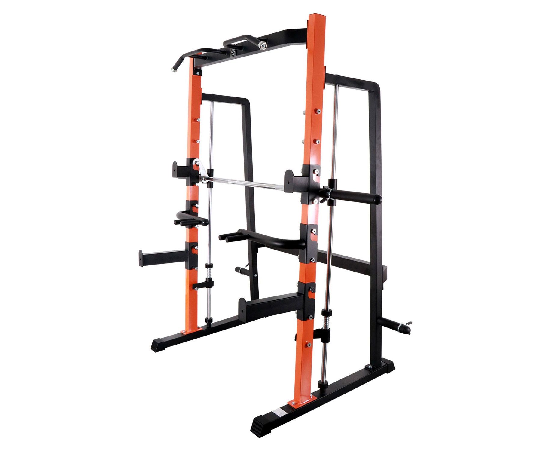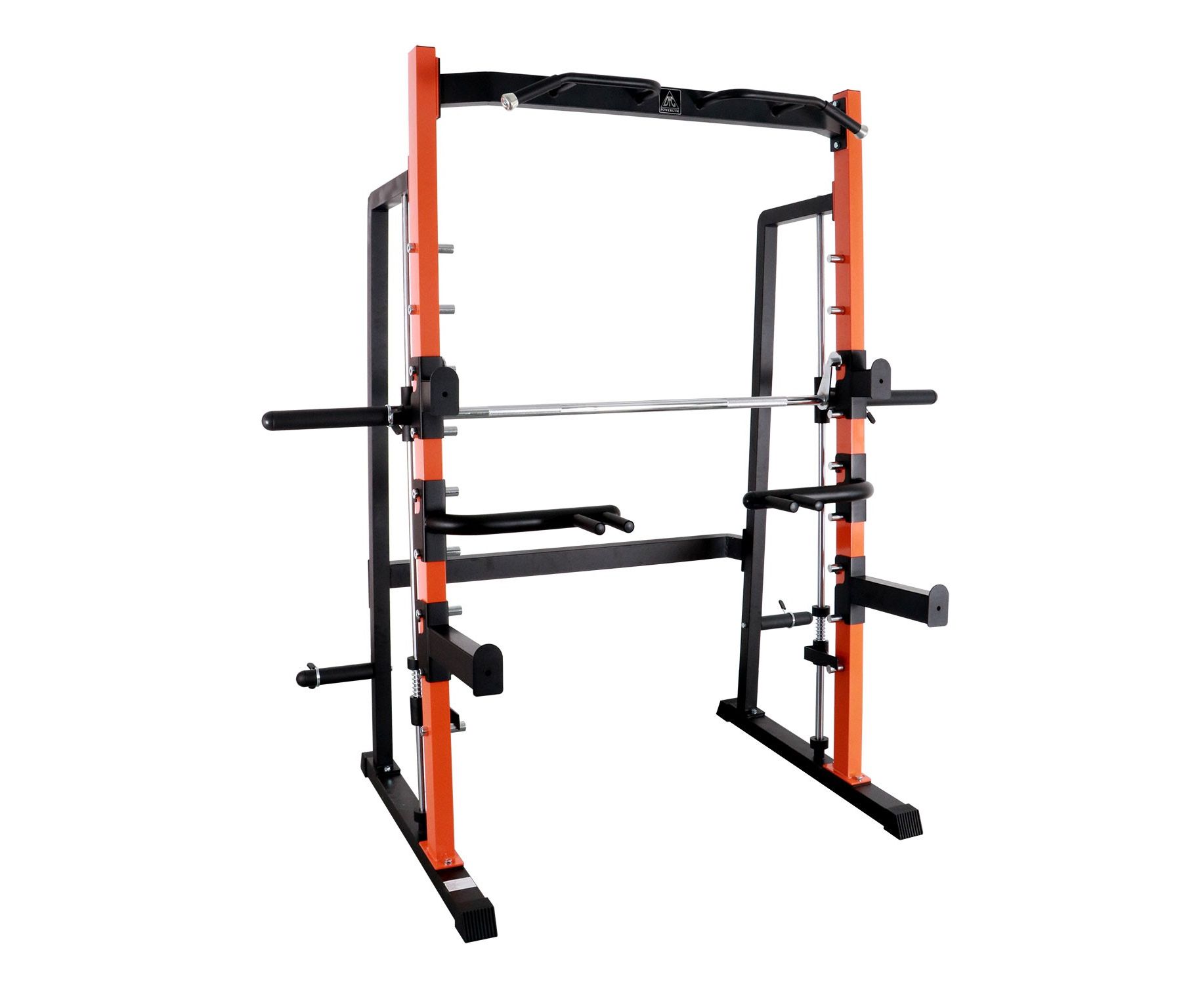 - Тренажер Машина Смита на базе силовой рамы. Позволяет выполнять широкий спектр упражнений для проработки различных групп мышц
