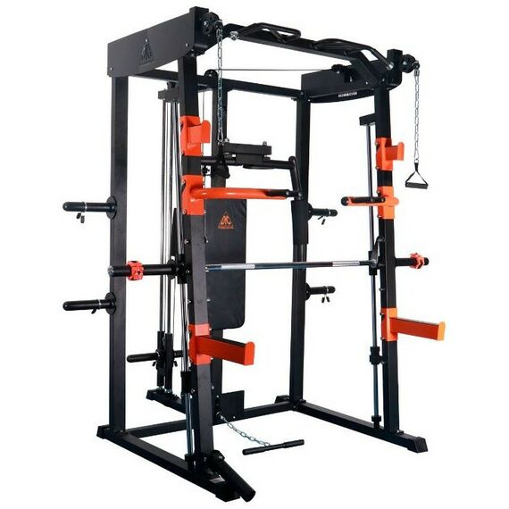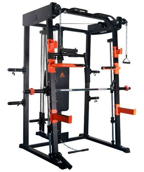- Основные особенности мультистанции: Машина Смита, кроссовер, тяга снизу и сверху, баттерфляй, турник с различными вариантами хвата для подтягиваний, брусья для отжиманий, различные аксессуары для выполнения силовых упражнений, места для хранения аксессуаров и дисков