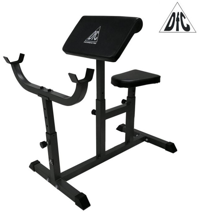 - Сиденье, парта для бицепса и стойки под штангу регулируются по высоте. 4 уровня регулировки
