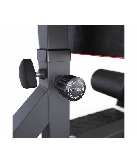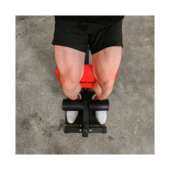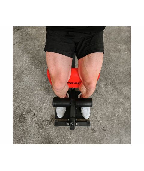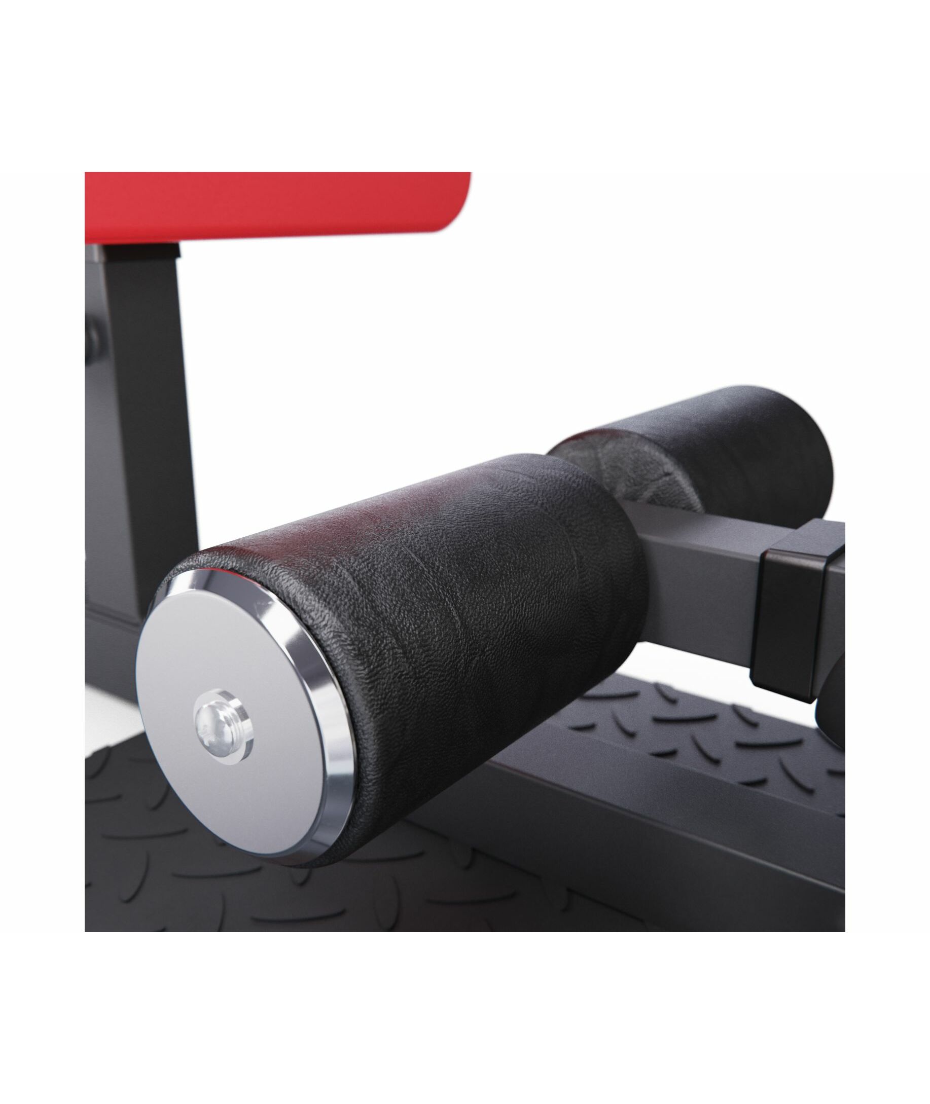 - Регулируемые валики для ног и нескользящая платформа фиксируют ваши ноги, позволяя поддерживать правильное положение тела во время тренировки. Эта система позволяет вам откинуться назад и по-настоящему сосредоточиться на укреплении бедер и мышц-стабилизаторов корпуса, особенно пресса.