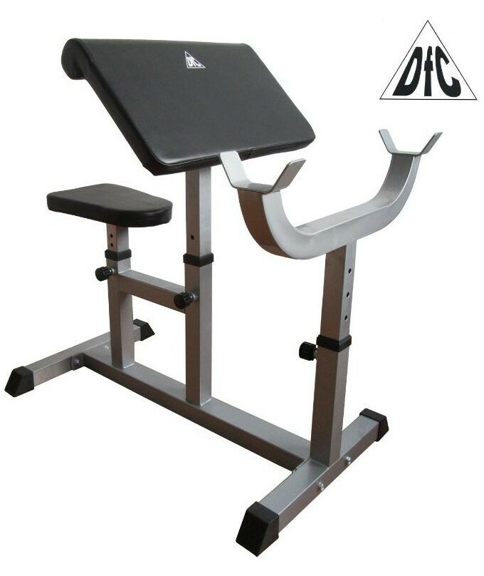- Сиденье, парта для бицепса и стойки под штангу регулируются по высоте