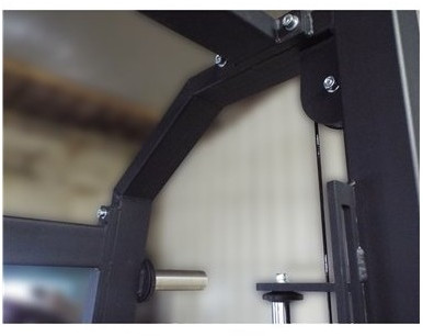 - Рама тренажёра изготовлена из стальной профильной прямоугольной трубы сечением 80х40х3 мм, обеспечивает достаточную жёсткость конструкции в совокупности с небольшим весом относительно этих размеров.