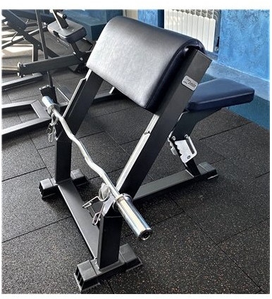 - Тренажёр Скамья Скотта AV110/80 представляет собой раму, изготовленную из стальной профильной прямоугольной трубы сечением 80х40х3 мм, на которой закреплено подвижное сиденье, опора для рук и груди и стальные крюки для штанги.