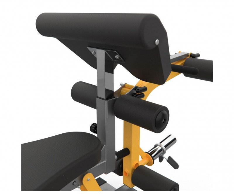 Сиденье регулируется на 4 уровня по углу наклона, спинка – на 8 уровней. Турник регулируется по высоте на 5 уровней. Парта для бицепса регулируется по высоте на 7 уровней.