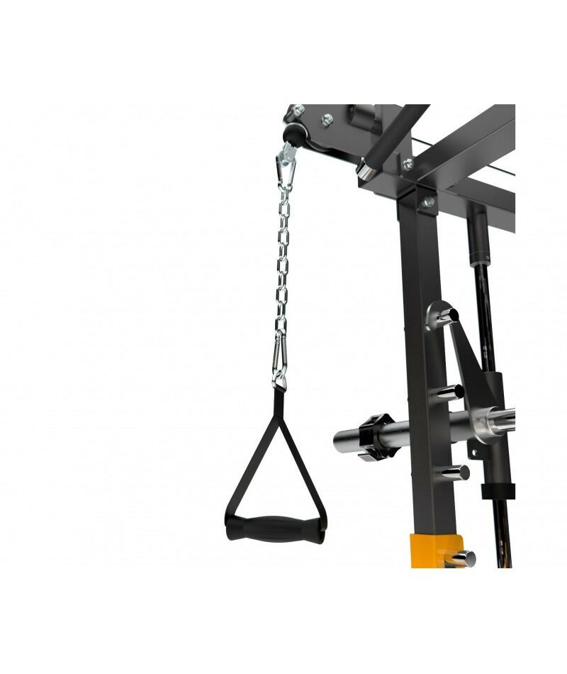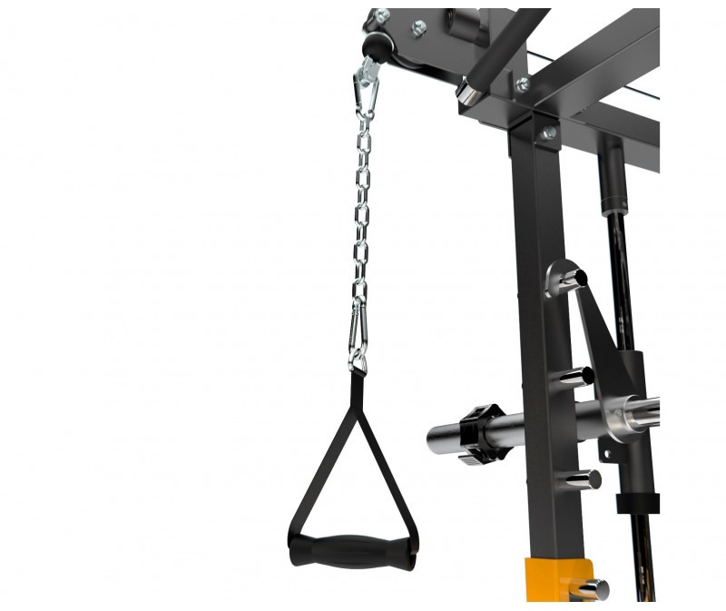 - Конструкция D873 устойчивая и долговечная: тросы толщиной 5 мм легко выдерживают постоянное использование, а корпус из профиля 50 х 70 х 2 мм сохранит устойчивость во время самых активных тренировок.
