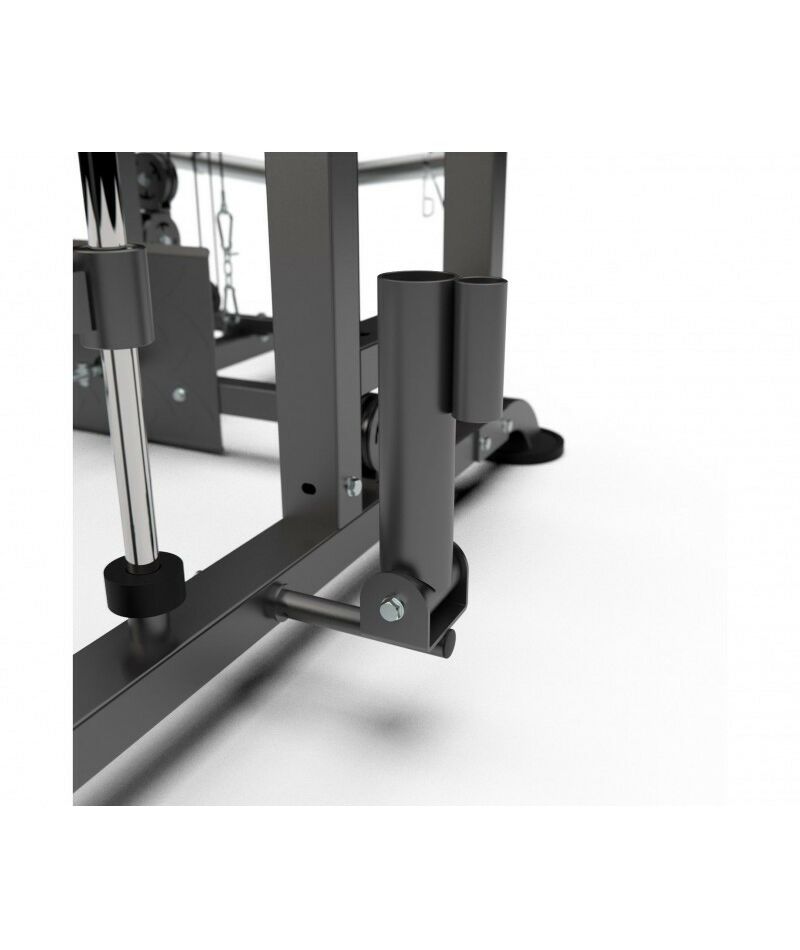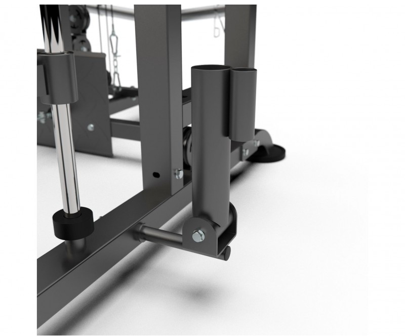- Для утяжеления используются диски диаметром 51 мм с центральным отверстием (в комплект поставки не входят!). Хранить диски возможно прямо на мультистанции: каждый из шести держателей выдерживает до 100 кг.