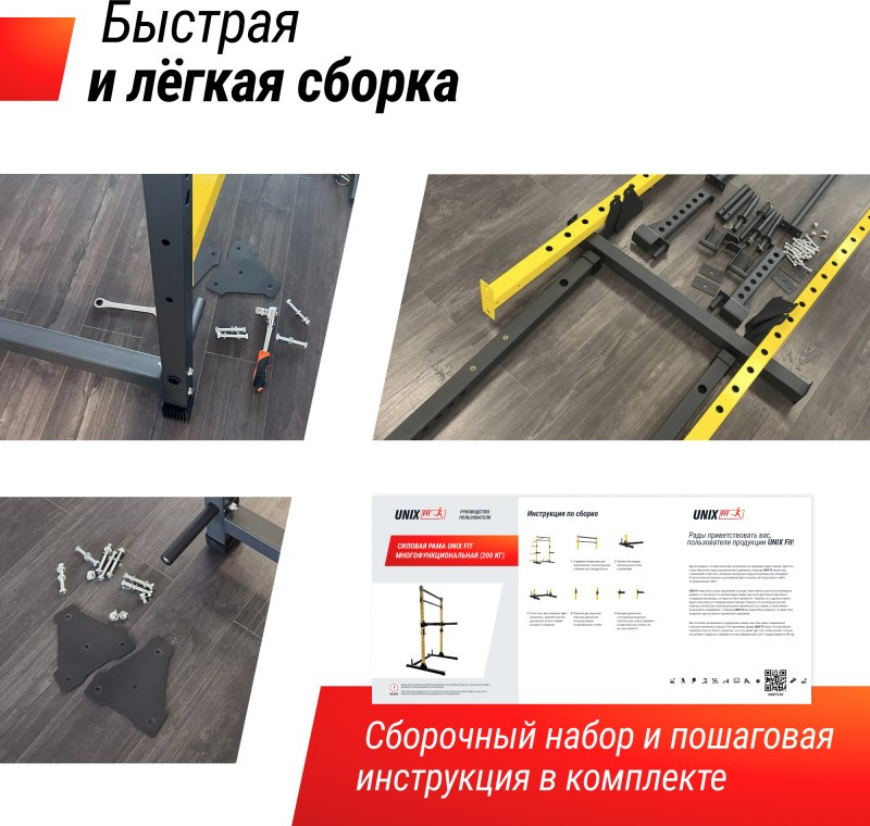 Силовая рама UNIX Fit для штанги - это универсальный инструмент для силовых тренировок со штангой, который также может быть использован для выполнения различных упражнений с дополнительным оборудованием.