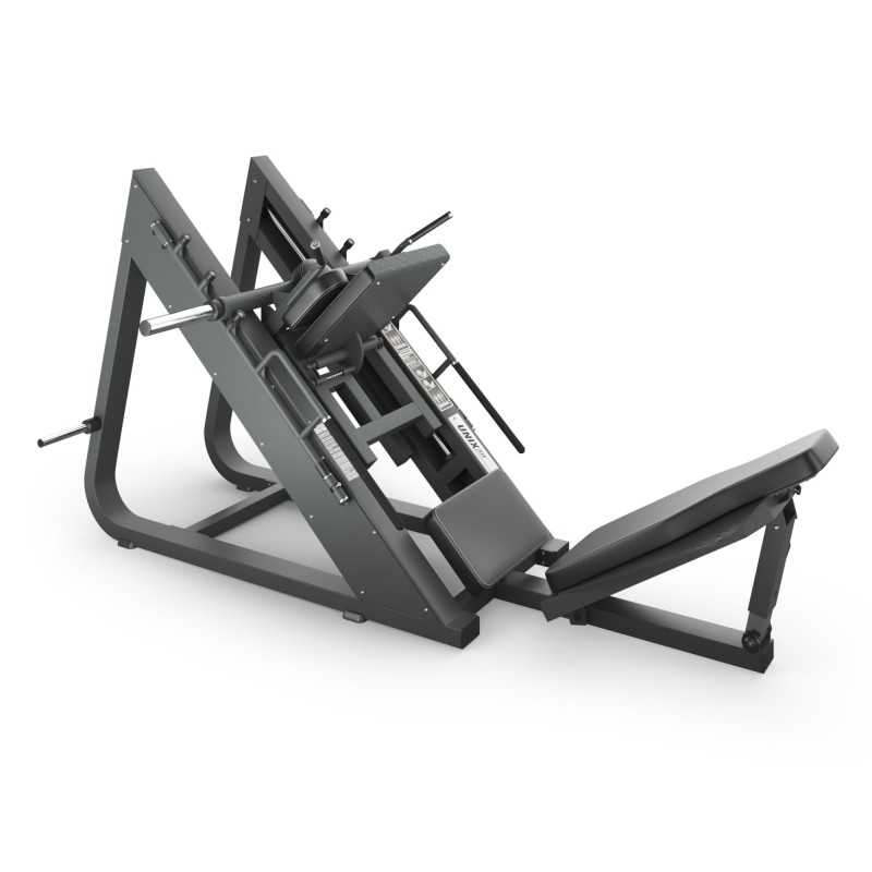 Тренажер для жима ногами станет вашим верным спутником в достижении спортивных целей. Независимо от вашего уровня подготовки, Гакк-машина поможет вам прокачать ноги и бедра до идеальной формы. С его помощью вы сможете улучшить свою физическую форму, сжечь лишние калории, укрепить мышцы и повысить общий уровень физической активности. Плотные валики для плеч и опорная спинка обеспечат комфорт и правильное положение во время выполнения упражнений. Опора для ног убирается для выполнения гак-приседаний.
