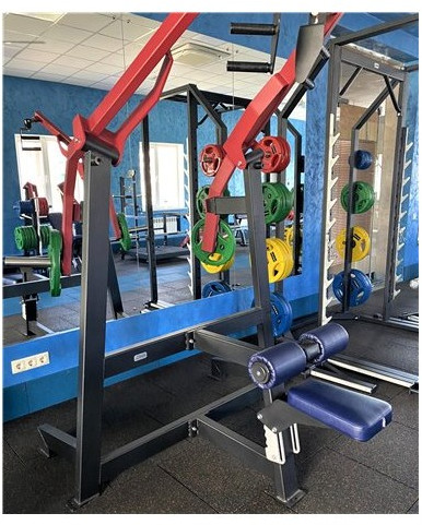 - Для задания нагрузки тренажер имеет держатели для дисков из нержавеющей стали с резиновыми отбойниками.