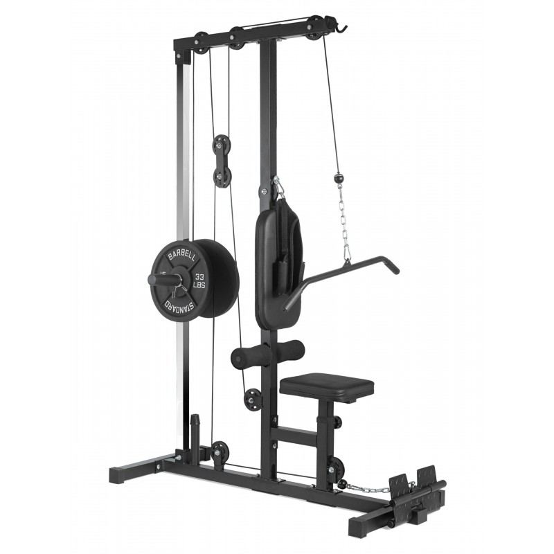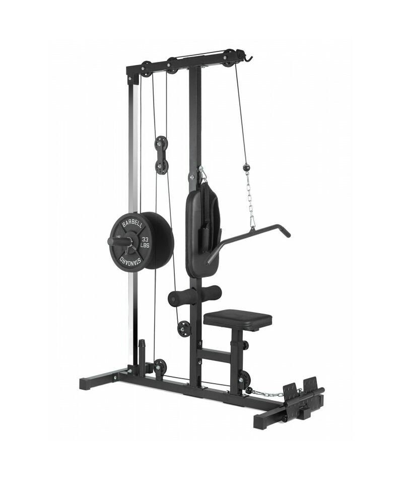 - Тяга верхнего блока для тренировки мышц спины, дельт и рук
