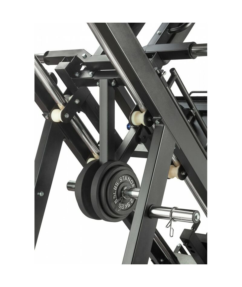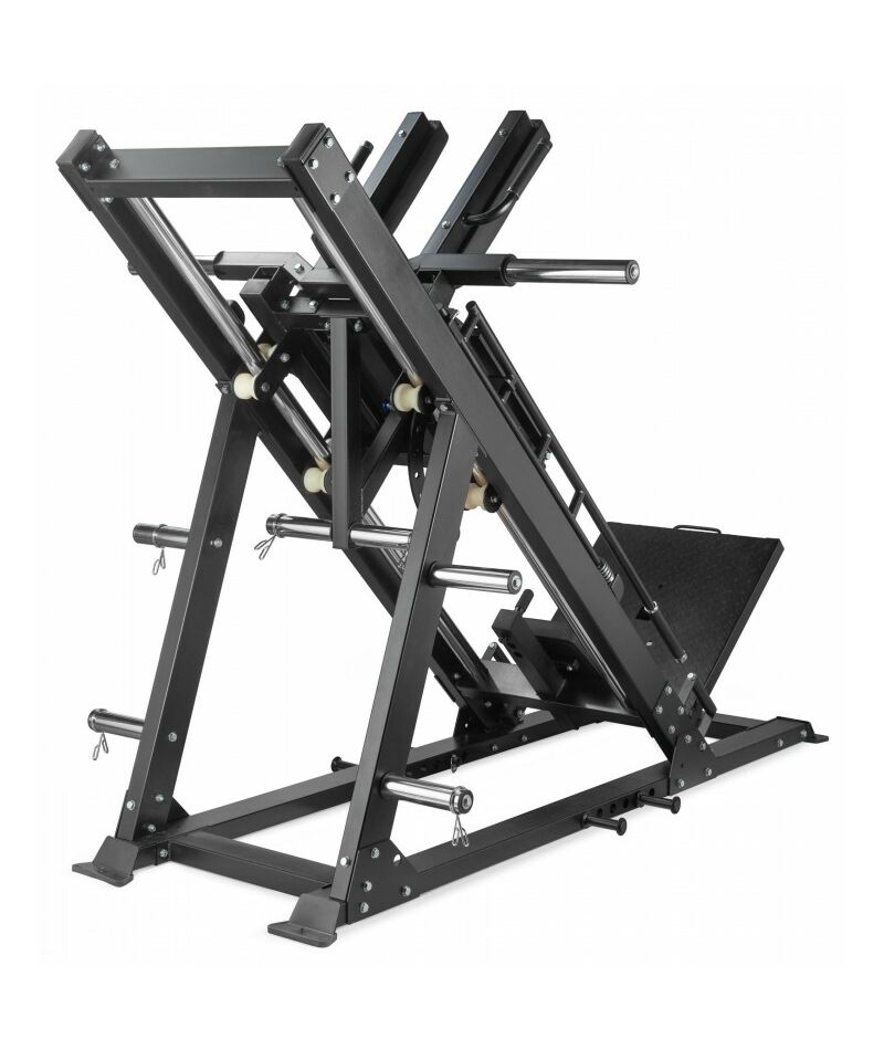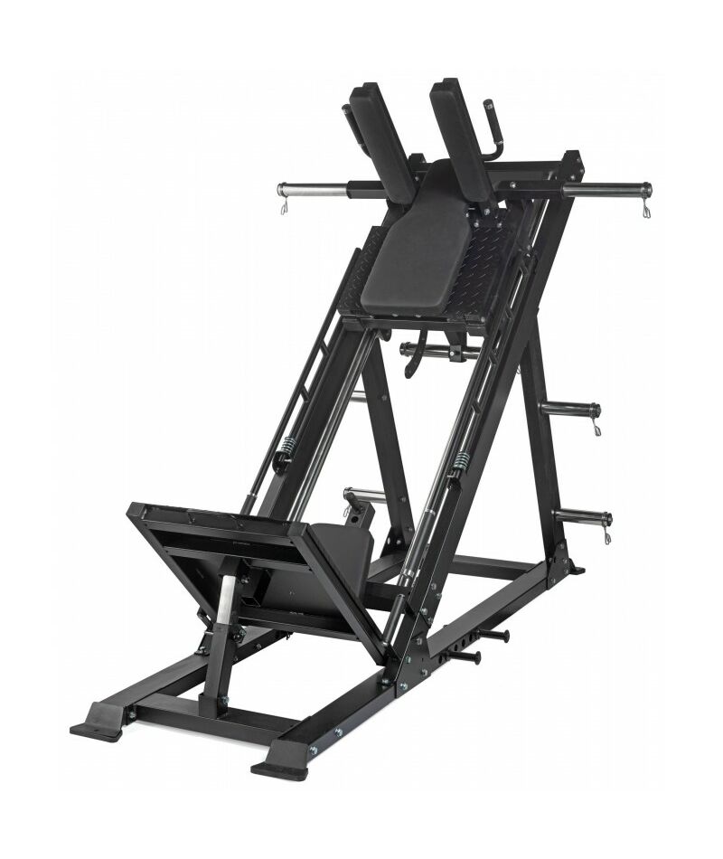 - Два режима работы в одном тренажере – выполняйте жим ногами для квадрицепсов и бицепсов бедер или гак-приседания для комплексной проработки ног и ягодиц.