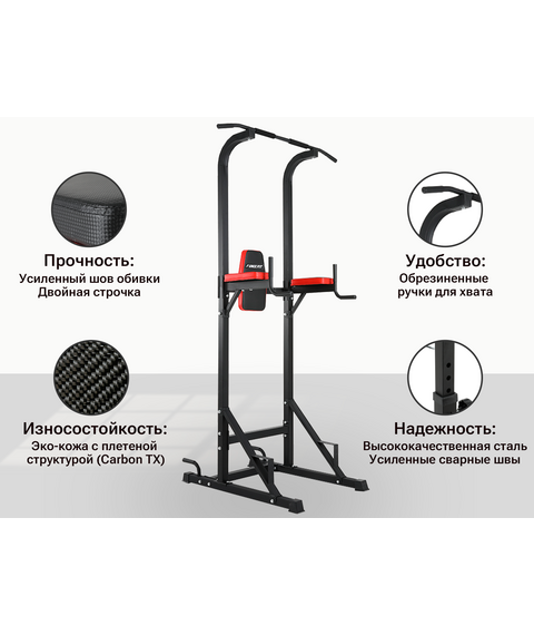 Максимальный вес нагрузки на турник до 140 кг. Преимущества тренажера турник-пресс-брусья UNIX Fit POWER TOWER 120: