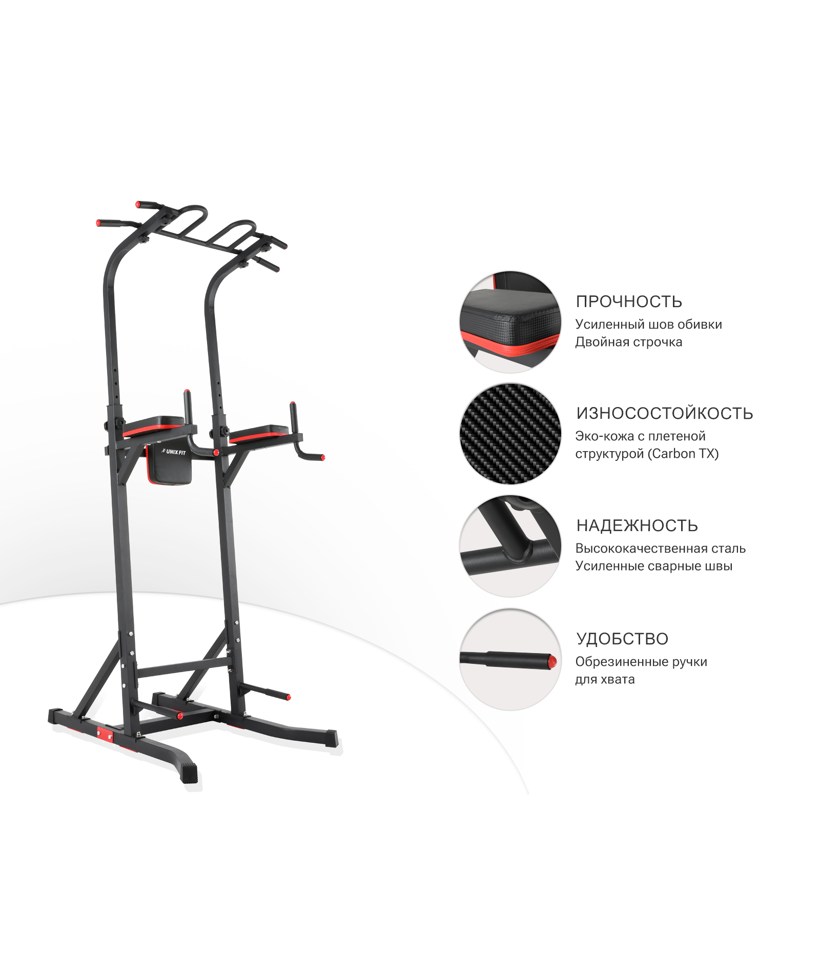 Преимущества тренажера турник-пресс-брусья UNIX Fit POWER TOWER 150:
